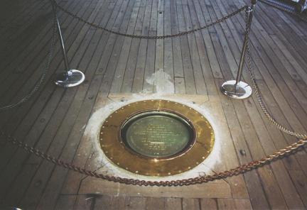 東京湾内に停泊中だった、戦艦ミズーリのこの場所で、日本の降伏文書は調印された。