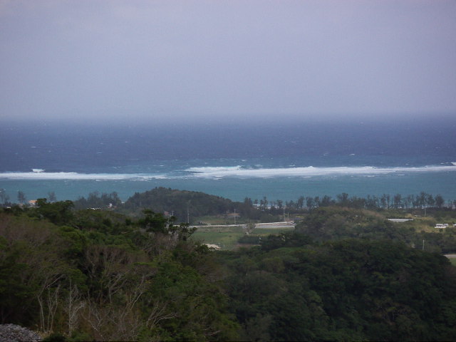 階段を上りきり、木々を抜け見晴らしの良い場所に出たとき、思わず声がもれた。周りの風景が、遮るものも無くパノラマで目に飛び込んできたのだ。眼下には、いま上ってきた木々や家々。その先の海岸線には白波が立ち、珊瑚の海はエメラルド・グリーンに輝いている。沖からは群青色に変わり、水平線で空と交わっている。